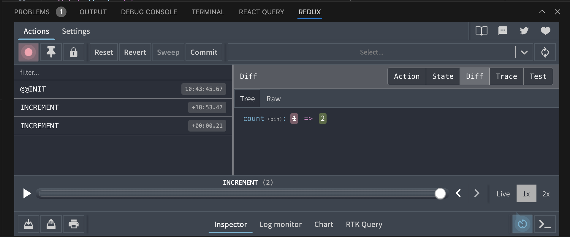 First-party Redux DevTools integration: If your app uses Redux Toolkit, the IDE will automatically detect that, and Redux plugin will be listed in the Dev Tools menu where you can enable it. Once enabled you will be able to use the official Redux UI from within your editor panel.